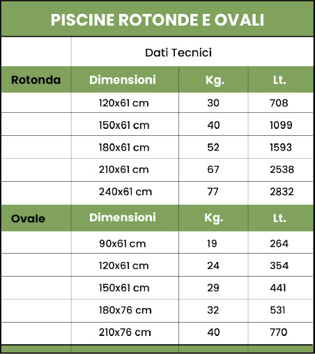 Ecco le esatte dimensioni di tutti i modelli disponibili, tonde ed ovali.
